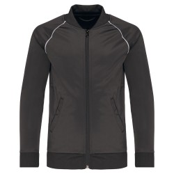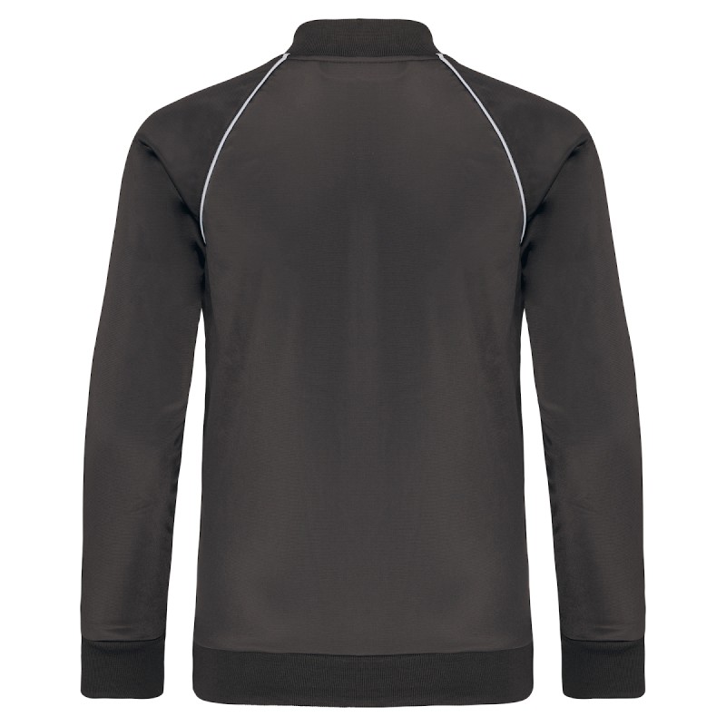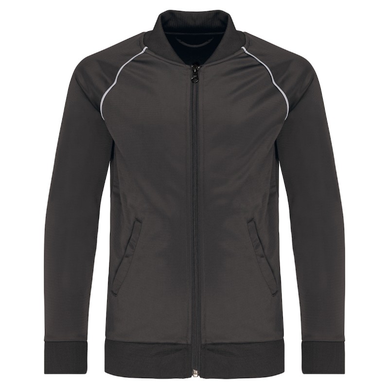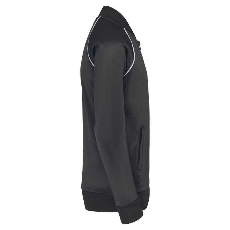 100% polyester tricot. Coupe droite. Fermeture zippée nylon ton sur ton. Manches raglan avec liseré contrasté. Bord-côte 1x1 au col, bas de manches et de vêtement. 2 poches latérales zippées. Etiquette de marque déchirable pour faciliter la personnalisation.