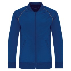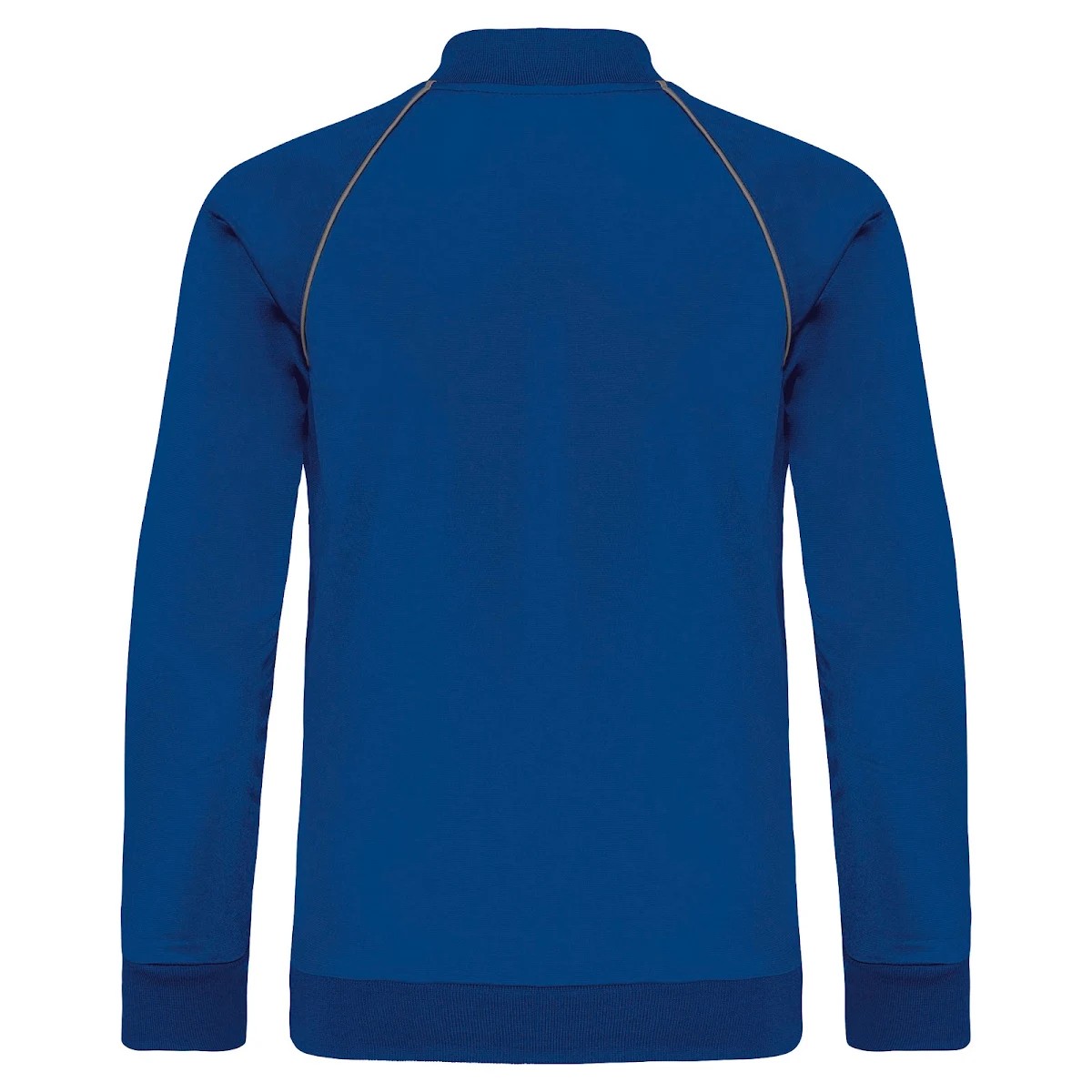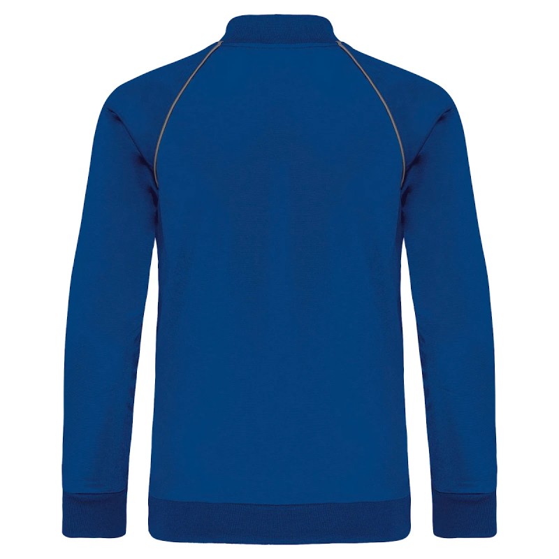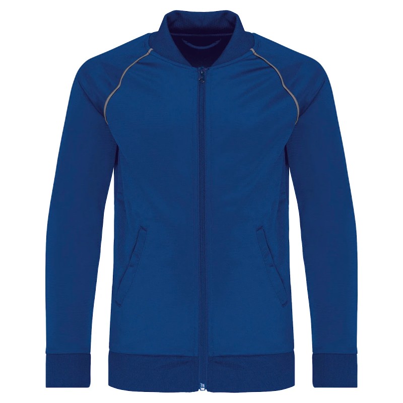 100% polyester tricot. Coupe droite. Fermeture zippée nylon ton sur ton. Manches raglan avec liseré contrasté. Bord-côte 1x1 au col, bas de manches et de vêtement. 2 poches latérales zippées. Etiquette de marque déchirable pour faciliter la personnalisation.