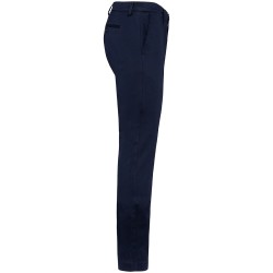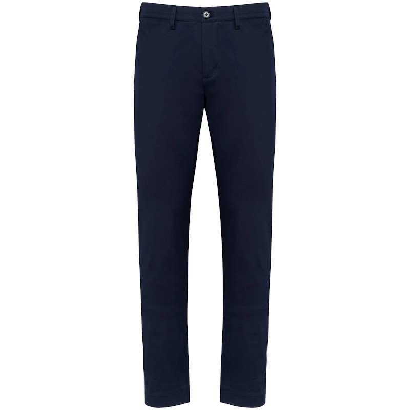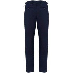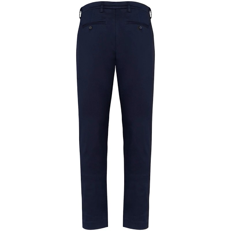 98% coton / 2% élasthanne. Tissu twill. Deux poches italiennes devant avec un liseré de propreté ton sur ton et piqûre nervure. Une poche ticket ainsi qu'une poche monnaie du côté droit au porté. Deux poches arrières passepoilées avec piqûre de renfort et boutons ton sur ton effet marbre. Braguette avec zip métal et bouton ton sur ton effet marbre. Ceinture avec passants. Finitions intérieures ceinture, braguette et sacs de poches au motif rayé subtil ton sur ton en blanc cassé sur toutes les couleurs. Pas d'étiquette de marque, uniquement une puce de taille pour faciliter la personnalisation.
