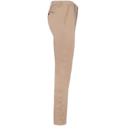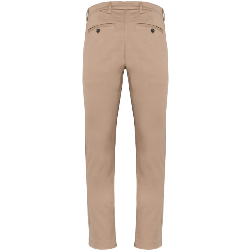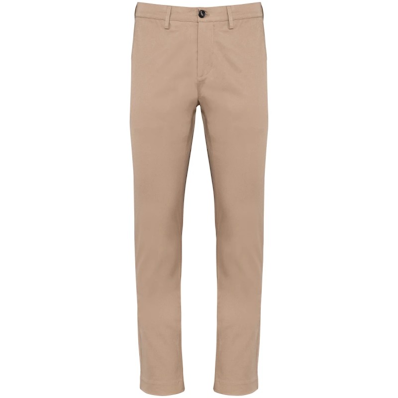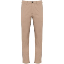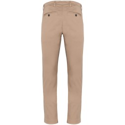 98% coton / 2% élasthanne. Tissu twill. Deux poches italiennes devant avec un liseré de propreté ton sur ton et piqûre nervure. Une poche ticket ainsi qu'une poche monnaie du côté droit au porté. Deux poches arrières passepoilées avec piqûre de renfort et boutons ton sur ton effet marbre. Braguette avec zip métal et bouton ton sur ton effet marbre. Ceinture avec passants. Finitions intérieures ceinture, braguette et sacs de poches au motif rayé subtil ton sur ton en blanc cassé sur toutes les couleurs. Pas d'étiquette de marque, uniquement une puce de taille pour faciliter la personnalisation.