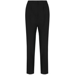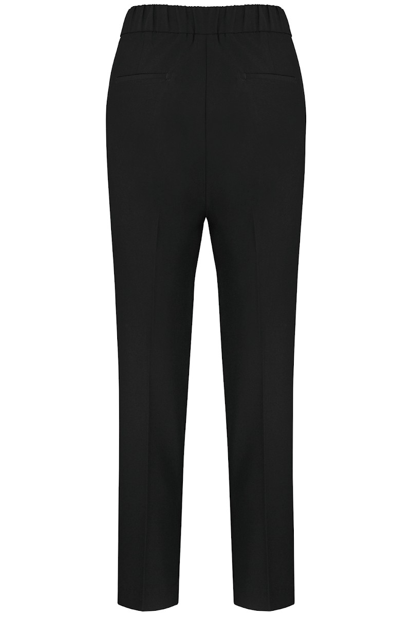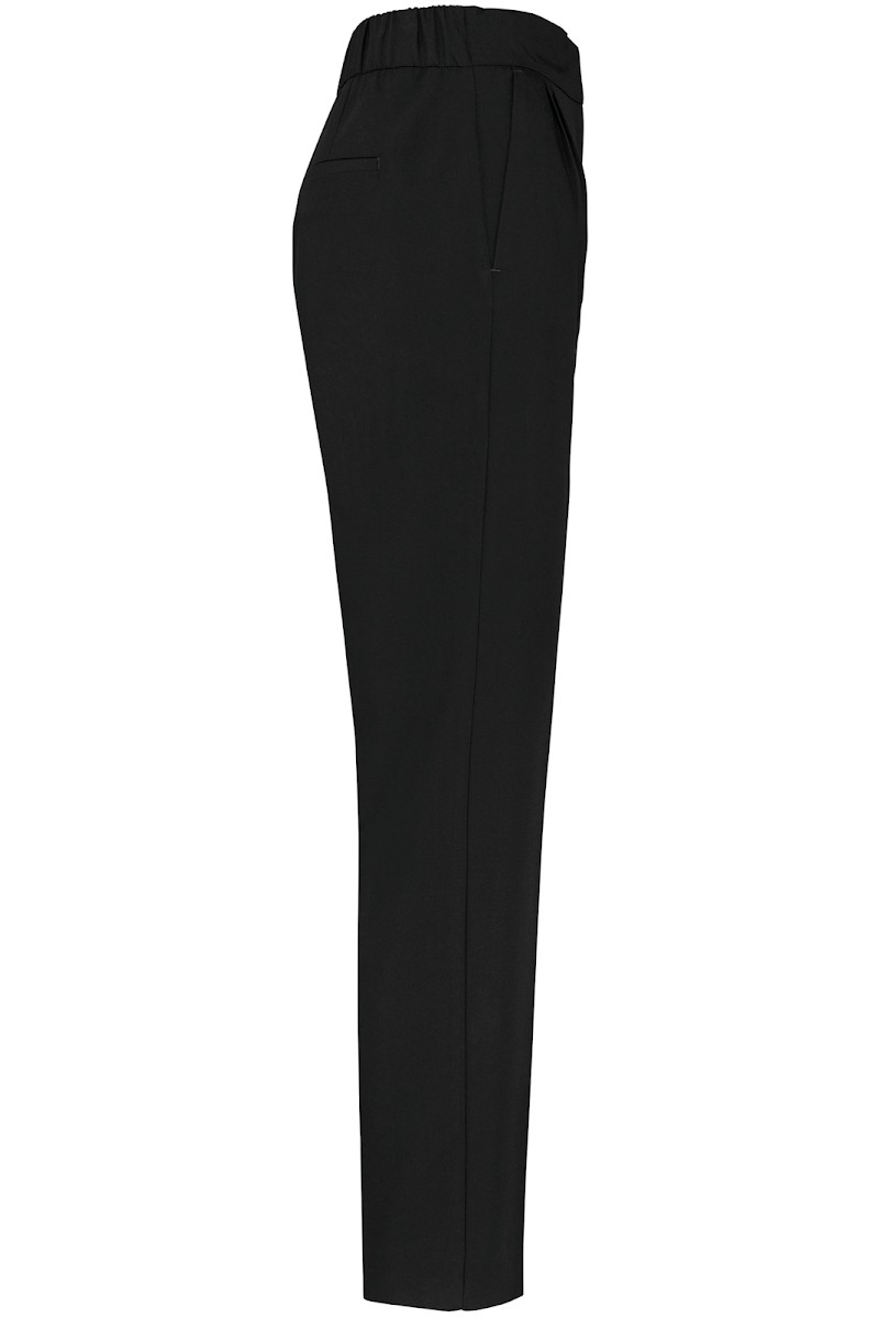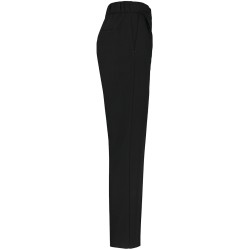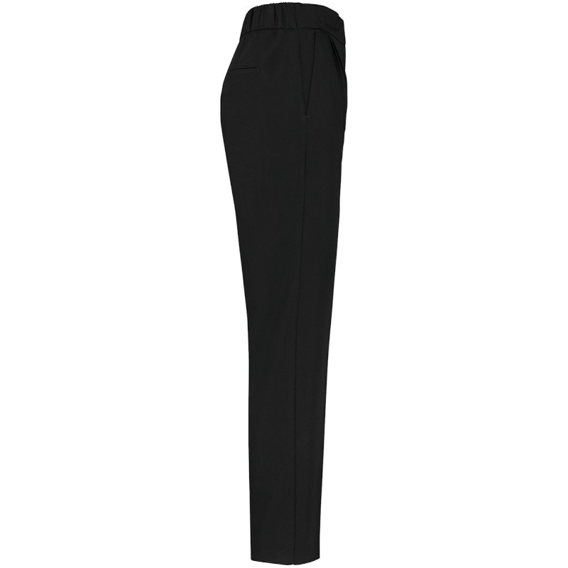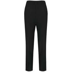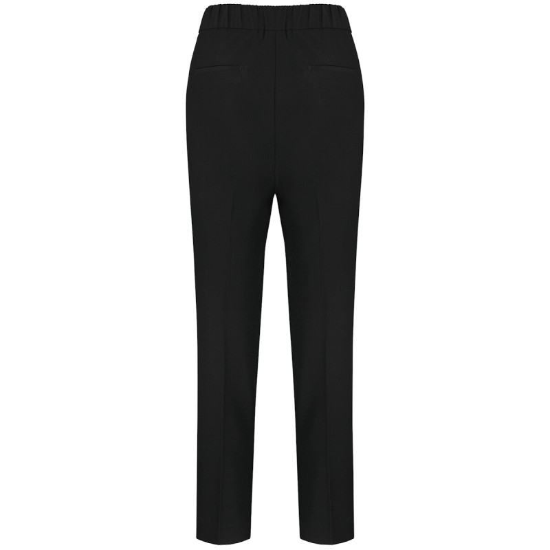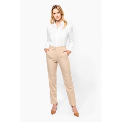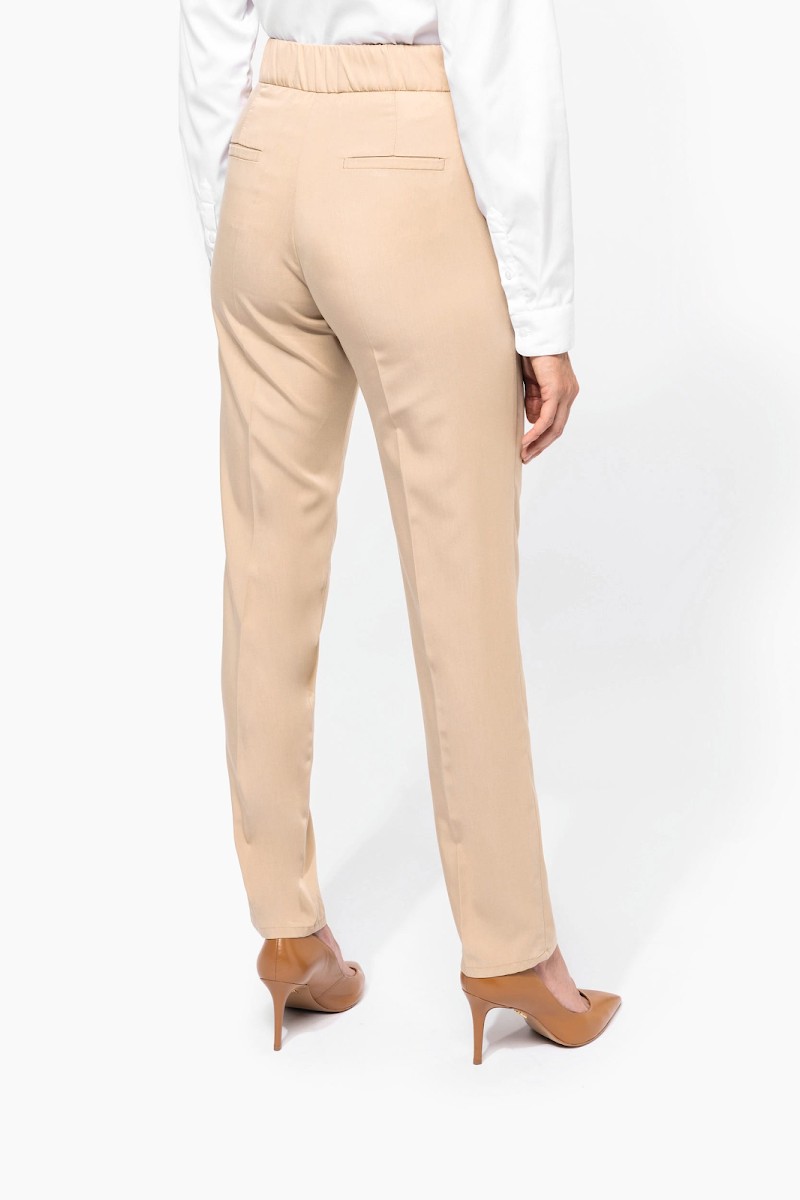 55% viscose / 42% polyester / 3% élasthanne. Tissu twill. Deux poches italiennes devant. Deux fausses poches passepoilées au dos. Braguette avec zip en nylon, deux crochets en métal et un bouton sous patte. Deux plis d'aisance devant avec un pli permanent jambe. Ceinture dos élastiquée pour plus de confort. Finition ceinture intérieure en matière principale avec une bordure en biais ton sur ton. Pas d'étiquette de marque, uniquement une puce de taille pour faciliter la personnalisation.
