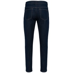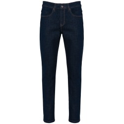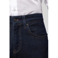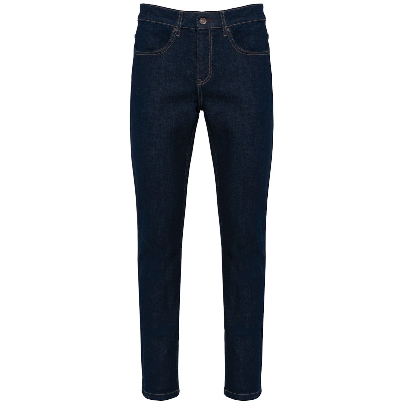 99% coton denim / 1% élasthanne. 10,5 oz. Fermeture zippée avec un bouton métal, rivets en métal de la même couleur Old Bras. Deux poches devant dont une avec poche ticket. 2 poches plaquées arrière. Coutures contrastées bordeaux. Ceinture avec passants et intérieur bande contrastée à l'arrière. Coupe droite. Ce jean est lavé avec un traitement spécifique impliquant des variations de couleurs d'une pièce à l'autre. Au fil des lavages, il va se patiner. En contact avec des surfaces claires, Il peut déteindre. À laver séparément. Pas d'étiquette de marque, uniquement une puce de taille pour faciliter la personnalisation.