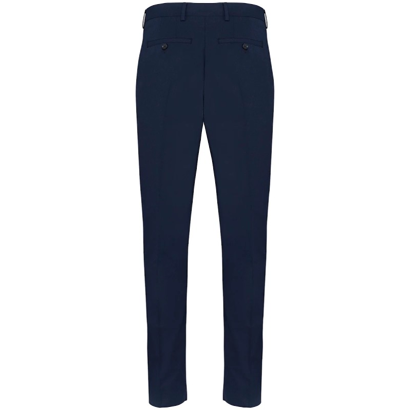 50% polyester / 23% viscose / 22% laine / 5% élasthanne. Deux poches italiennes devant. Deux poches dos passepoilées avec des boutons ton sur ton, ainsi qu'une piqûre nervure autour. Plis permanent jambes devant et dos. Braguette avec zip en nylon ton sur ton avec deux crochets en métal. Ceinture avec passants. Doublure en polyester haut de jambe devant pour un meilleur confort. Finition bas de jambe ourlet invisible. Pas d'étiquette de marque, uniquement une puce de taille pour faciliter la personnalisation.