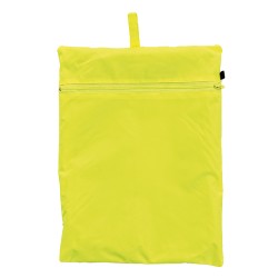 Sur-vêtement de pluie haute visibilité Homme Bandes réfléchissantes Manches raglan Col montant avec capuche intégrée Capuche amovible avec cordon de serrage Fermeture zippée et rabat boutons pression 2 poches latérales avec rabat Coutures étanches Poignets élastiqués Pantalon avec taille élastiquée Longueur des jambes ajustable Coupe-vent et étanche 100% polyester Tissage Oxford et enduction PU Poids : 105 gr/m². Revêtement PU Lavable à 40 °C Coutures étanches EN ISO 20471 (classe 3 : veste et classe 1 : pantalon) et EN 343+A1 (imperméabilité : classe 3 et respirabilité : classe 1) Rangement pratique sous pochette individuelle