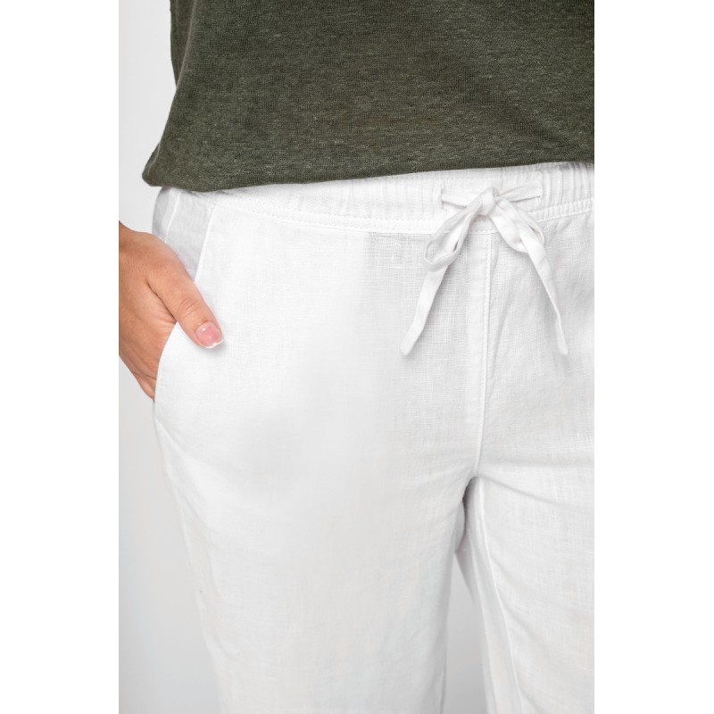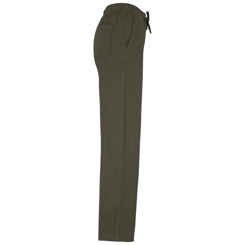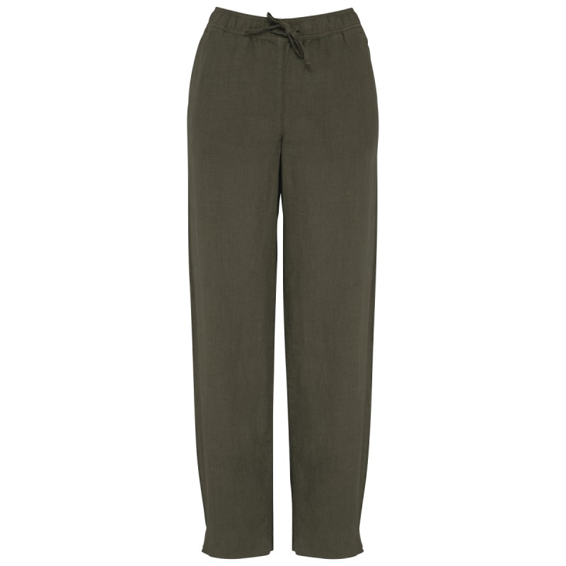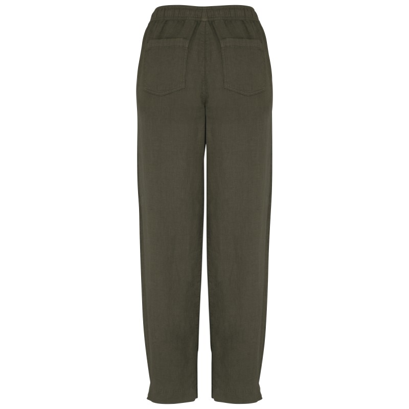 100% lin. Tissé. Aspect délavé. Coupe large. Ceinture avec surpiqûres, élastiquée avec cordon de serrage plat en matière principale ton sur ton. Œillet brodées. Finition ceinture intérieure en biais ton sur ton. Poche côté avec une finition en piqûre nervure. Fourche devant et dos avec une piqûre nervure en renfort. Poches plaquées dos avec surpiqûres. Ourlet invisible bas de vêtement. Vêtement teint en pièce après montage: cette technique peut présenter des variations de couleurs d'un produit à un autre. Vêtement teint en pièce après montage : les couleurs peuvent légèrement varier d'un produit à un autre. Ce produit est susceptible de déteindre au contact avec des surfaces ou vêtements clairs.