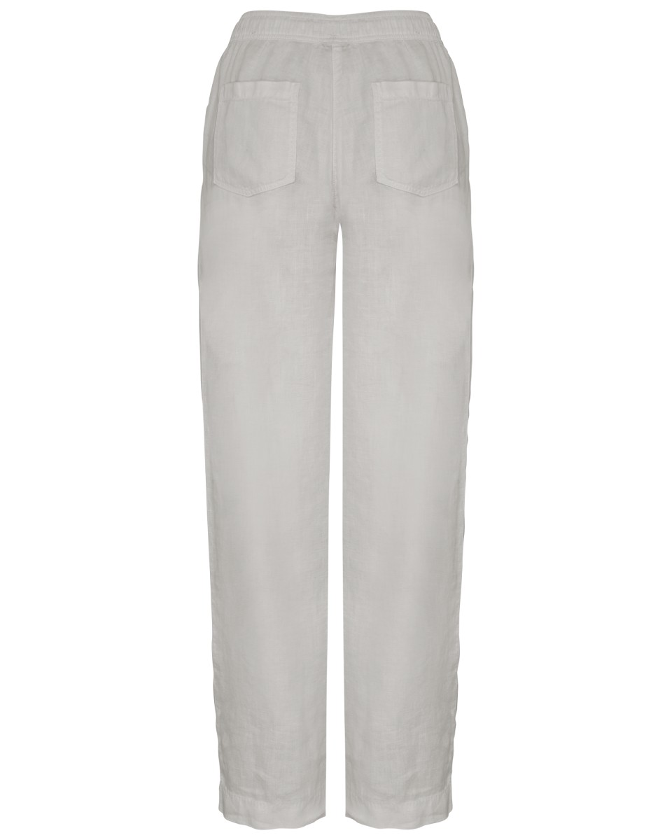 100% lin. Tissé. Aspect délavé. Coupe large. Ceinture avec surpiqûres, élastiquée avec cordon de serrage plat en matière principale ton sur ton. Œillet brodées. Finition ceinture intérieure en biais ton sur ton. Poche côté avec une finition en piqûre nervure. Fourche devant et dos avec une piqûre nervure en renfort. Poches plaquées dos avec surpiqûres. Ourlet invisible bas de vêtement. Vêtement teint en pièce après montage: cette technique peut présenter des variations de couleurs d'un produit à un autre. Vêtement teint en pièce après montage : les couleurs peuvent légèrement varier d'un produit à un autre. Ce produit est susceptible de déteindre au contact avec des surfaces ou vêtements clairs.