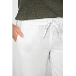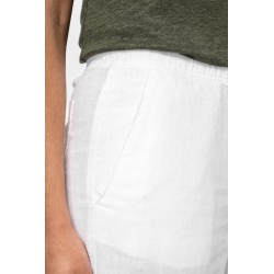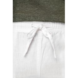 100% lin. Tissé. Aspect délavé. Coupe large. Ceinture avec surpiqûres, élastiquée avec cordon de serrage plat en matière principale ton sur ton. Œillet brodées. Finition ceinture intérieure en biais ton sur ton. Poche côté avec une finition en piqûre nervure. Fourche devant et dos avec une piqûre nervure en renfort. Poches plaquées dos avec surpiqûres. Ourlet invisible bas de vêtement. Vêtement teint en pièce après montage: cette technique peut présenter des variations de couleurs d'un produit à un autre. Vêtement teint en pièce après montage : les couleurs peuvent légèrement varier d'un produit à un autre. Ce produit est susceptible de déteindre au contact avec des surfaces ou vêtements clairs.