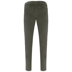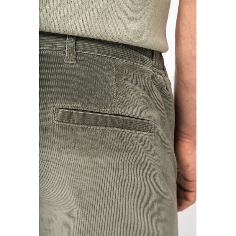 98% coton biologique / 2% élasthanne recyclé. Tissé. Tissu en velours côtelé. Ceinture élastiquée sur les côtés uniquement pour plus de confort. Braguette avec surpiqûre, boutons pressions et zip cachés en métal recyclé. Passants de ceinture devant et dos. Deux poches côtés avec surpiqûre. Deux poches passepoilées au dos avec piqûre nervure. Fourche devant et dos avec double surpiqûres et simple surpiqûre entrejambe pour plus de renfort. Intérieure ceinture avec biais de finition ton sur ton. Ourlet simple surpiqûre bas de vêtement. Vêtement lavé après montage : les couleurs peuvent légèrement varier d’une pièce à l’autre.