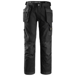 Pantalon de travail avec poches holster à coupe large, idéal pour un usage quotidien. Le pantalon est fabriqué avec un tissu Canvas à la fois doux et durable qui offre un confort de travail sans pour autant compromettre la durabilité. De plus, les extrémités des jambes renforcées offrent une durabilité accrue tandis que le système KneeGuard™ avec renforts en CORDURA® assure une protection fiable des genoux. Les jambes préformées et le gousset à l’entrejambe procurent une souplesse et une aisance de mouvement supplémentaires lors d’un travail intense.