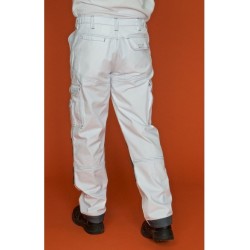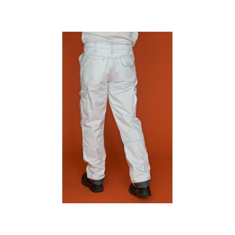 Ceinture élastiques côtés, 2 poches italiennes, 2 poches arrières passepoilées avec rabat, 2 poches cuisses, 1 poche téléphone, poches genouillères en cordura