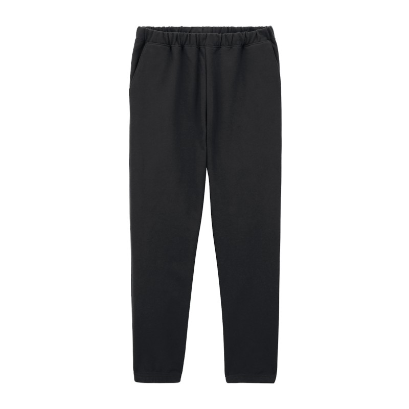80% Coton Ring Spun / 20% Polyester. Ceinture élastique recouverte de cordons plats internes de couleur assortie. Poches latérales inclinées. Coupe classique, avec jambes fuselées et poignets élastiques.