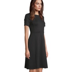 Simple et contemporaine, la robe midi manches courtes se porte à tous les moments de la journée, pour un look élégant. Féminine avec son encolure arrondie, elle est également agréable au porter grâce à sa maille milano souple et légère.