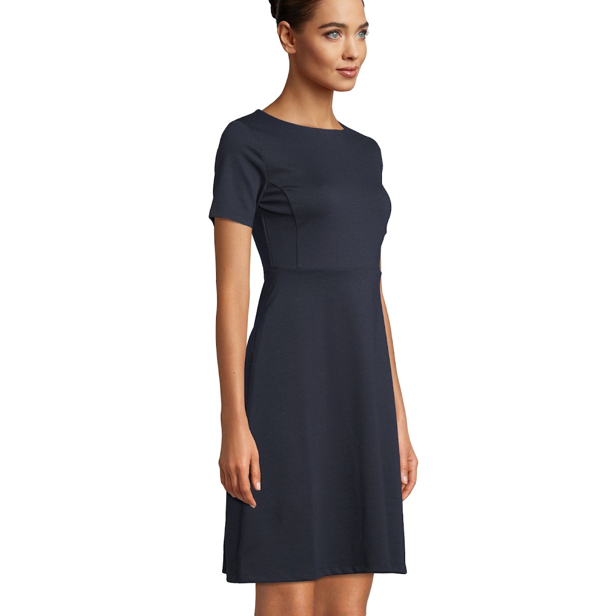 Simple et contemporaine, la robe midi manches courtes se porte à tous les moments de la journée, pour un look élégant. Féminine avec son encolure arrondie, elle est également agréable au porter grâce à sa maille milano souple et légère.