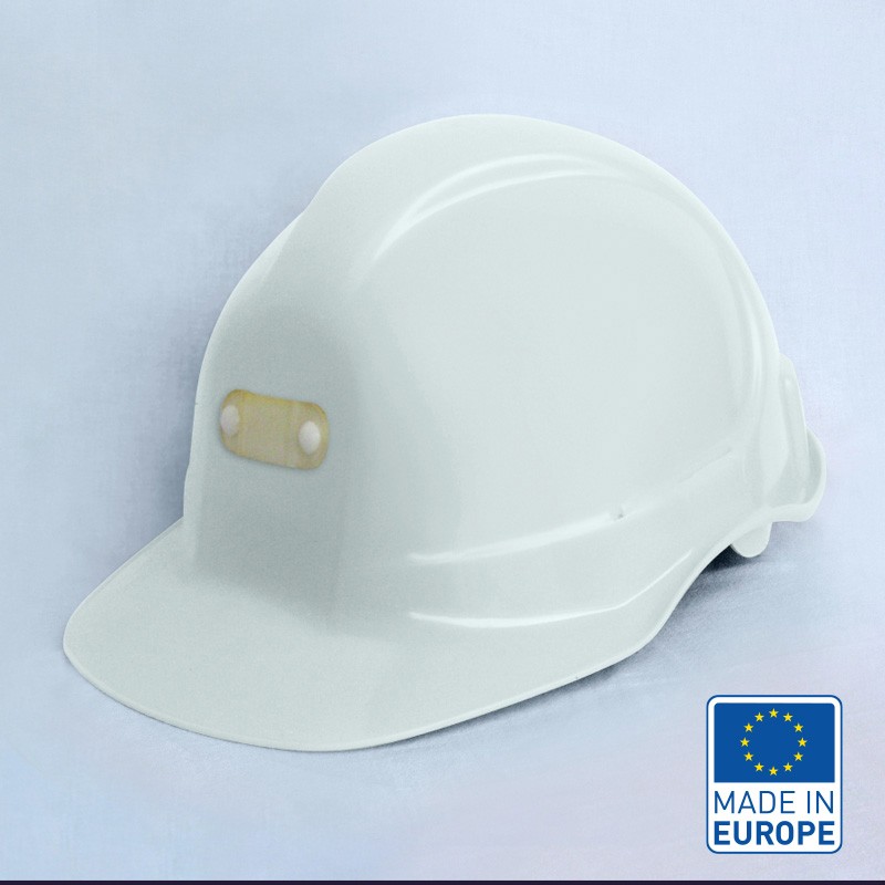 Casque de sécurité Capacité d'isolation électrique jusqu'à 440Vac Harnais textile à 6 points et jugulaire Bandeau de transpiration en croûte de cuir de vache Protection contre les charges de compression latérales Résistance à la pénétration des températures de -20°C à 50°C Tour de tête : 53-62 cm PEHD EN 397:2012 / A1:2012 Durée de vie : 5 ans à partir de la date de fabrication Pour activités sous lumière artificielle / faible éclairage / mauvaise visibilité Fabrication Europe