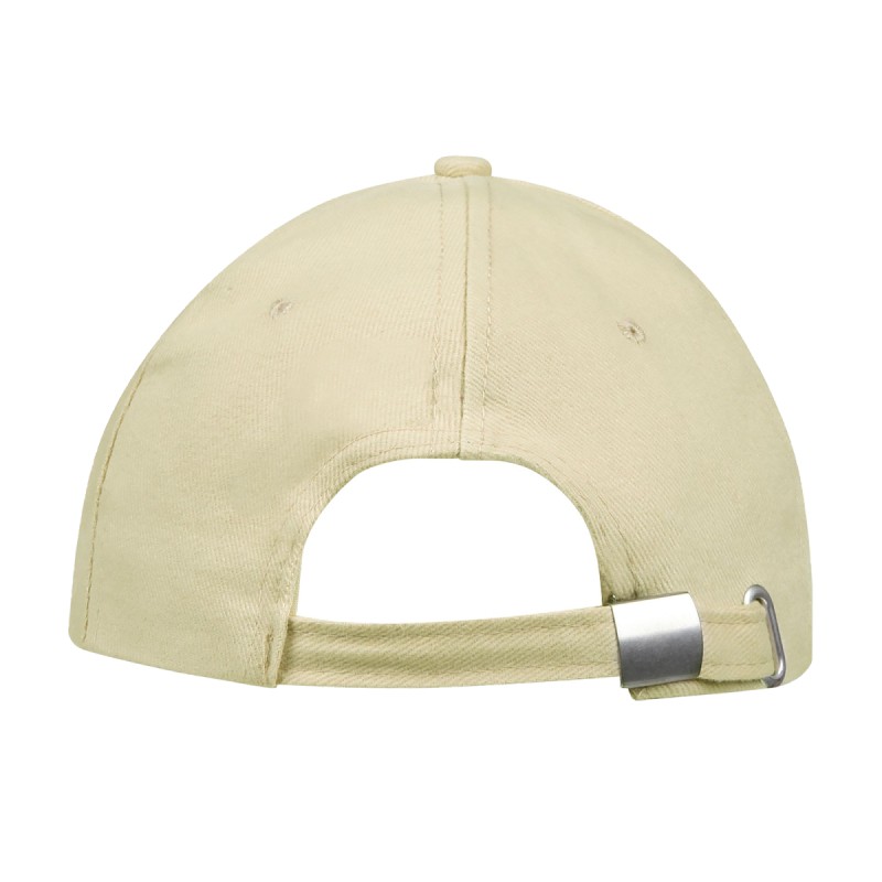 Fermeture arrière réglable par boucle métallique argentéeCoton brossé épais, boucle métal alu, visière qualitative en plastique préformé et renfort frontal. Un produit de qualité avec une large gamme de couleurs et l'un des meilleurs rapport qualité/prix du marché.