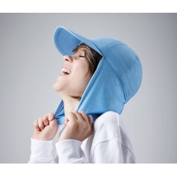 casquette 6 panneau | Visière précourbée | 100% Coton Twill - 220gsm | Ajustement de taille élastiqué | Boutons sécurisé enfant | Surface avant centrée et sans couture | Protection pliable des oreilles et du cou