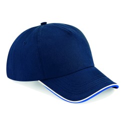100% Coton Twill - 220gsm | Panneau face avant structuré | 5 panneaux design | Visière précourbée | Bord de pointe passepoilé de couleur contrastante | Trous d'aération brodés | Sangle de serrage par boucle réglable