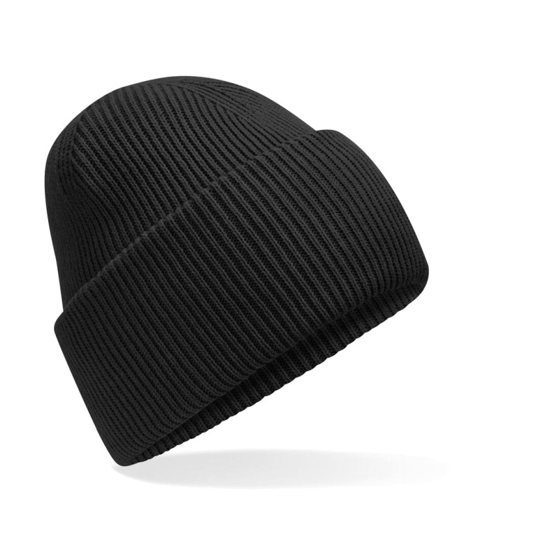 Bonnet en bord côte. Double épaisseur. Revers pour faciliter le marquage. Étiquette détachable.