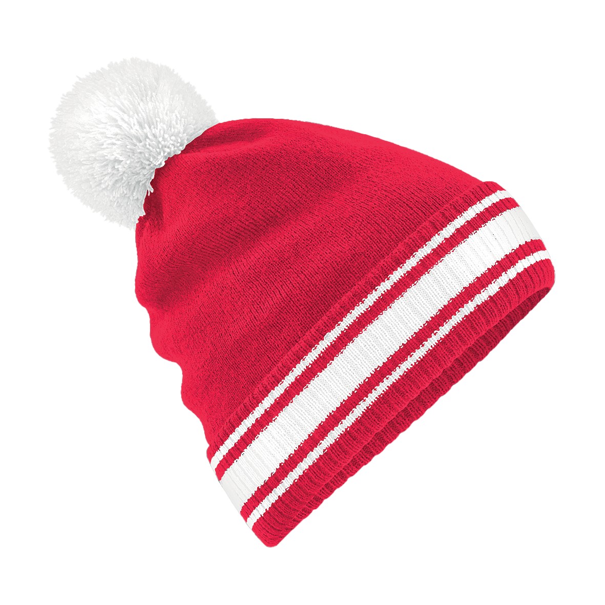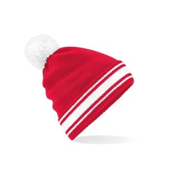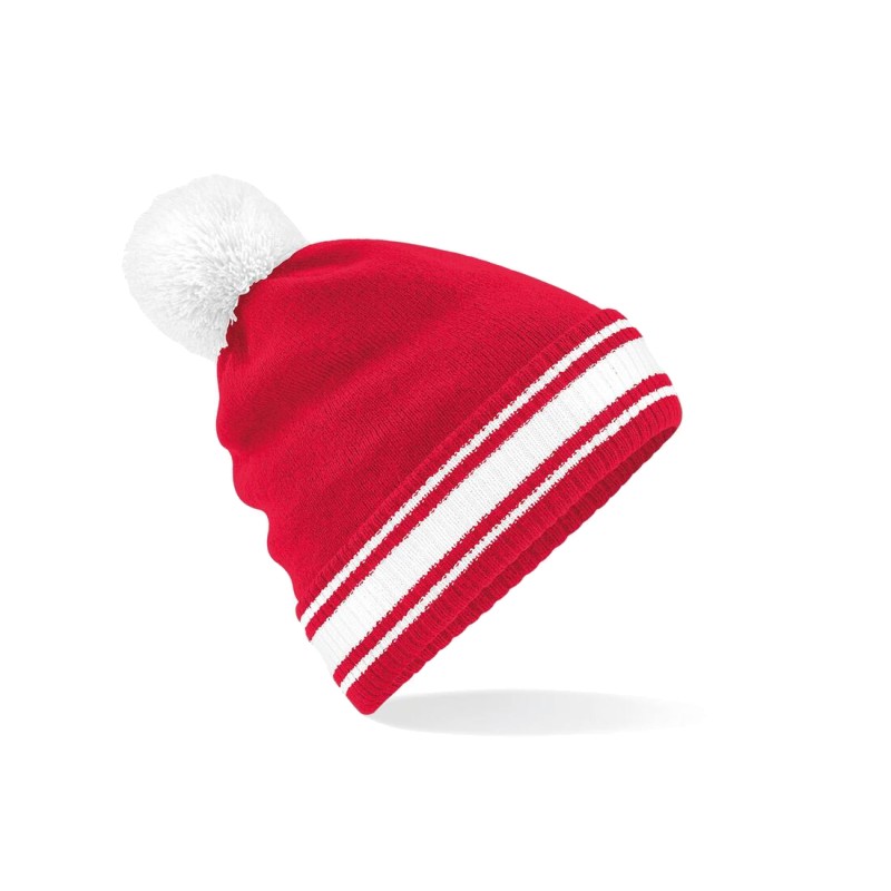 100% Soft-Touch Acrylique | Étiquette détachable pour faciliter le changement de nom | Conception à revers pour une décoration optimale | Pompon contrastant et manchette rayée | Tricot double couche | combinaisons de couleur classiques