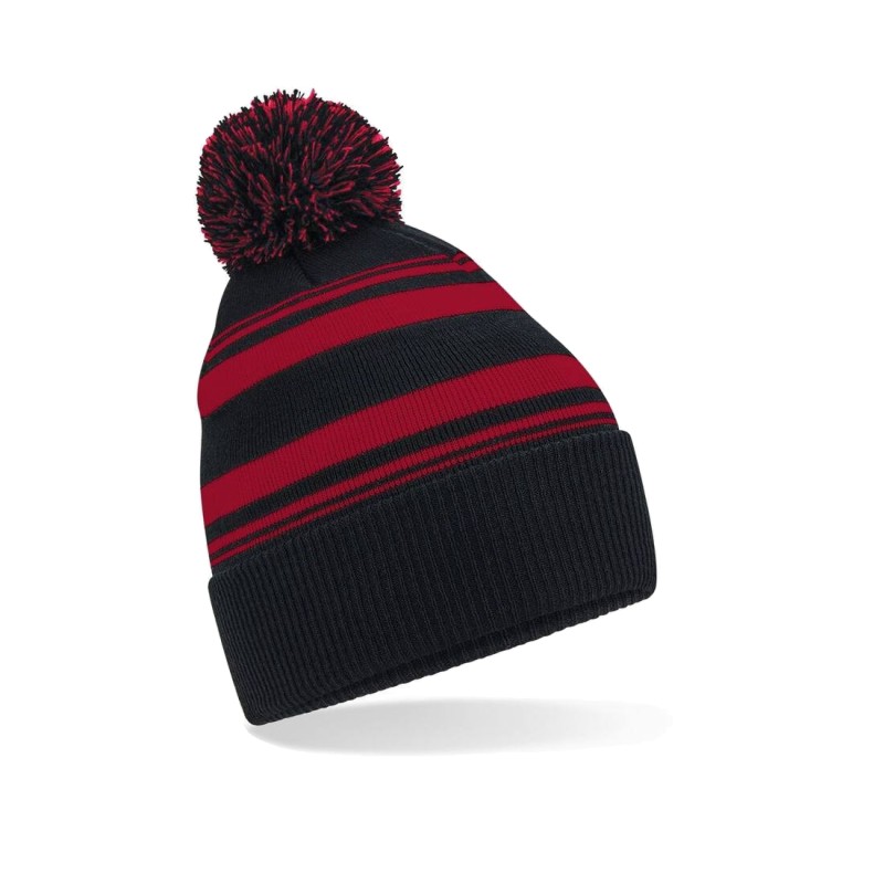 Contient 50% de polyester recyclé. Doublé. Pompon bicolore. Avec revers.