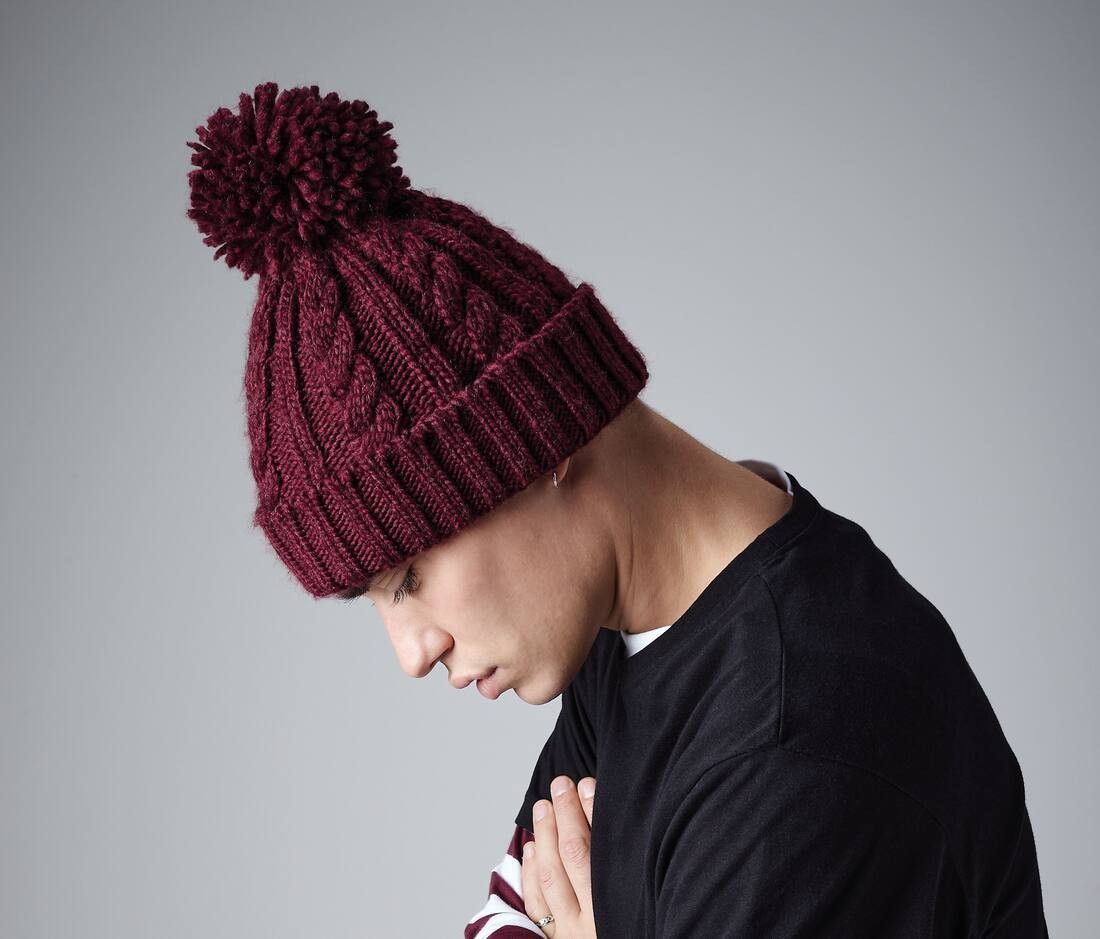 Étiquette détachable pour faciliter le changement de nom | Lourde maille torsadée en laine mélangée | Pompon uni-colore | Touche 'tricoté à la main' | Bande thermique Suprafleece™ | Conception à revers pour une décoration optimale