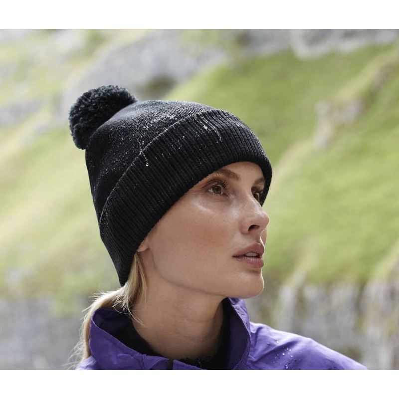 Traitement déperlant durable pour une meilleure protection contre les intempéries. Revers à mailles. Pompon de même couleur.