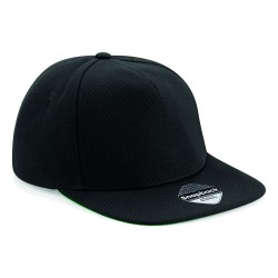 Trous d'aération brodés | 5 panneaux design | Sommet plat | Fermeture en matière plastique à taille ajustable | Sous-visière en vert sauf Black/Black/Black : sous-visière noir | Sergé de polyester | Autocollant authentique sur la visière
