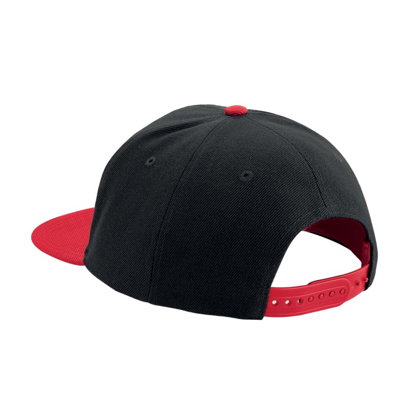 Trous d'aération brodés | 5 panneaux design | Sommet plat | Fermeture en matière plastique à taille ajustable | Sous-visière en vert sauf Black/Black/Black : sous-visière noir | Sergé de polyester | Autocollant authentique sur la visière