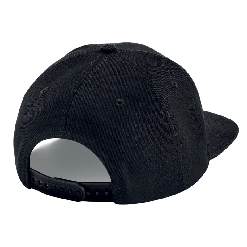 100% polyester sergé | Étiquette détachable | 6 panneaux | Panneaux frontaux structurés | Visière plat | Trous d'aération brodés | Fermeture en matière plastique à taille ajustable