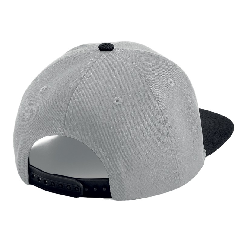 100% polyester sergé | Étiquette détachable | 6 panneaux | Panneaux frontaux structurés | Visière plat | Trous d'aération brodés | Fermeture en matière plastique à taille ajustable