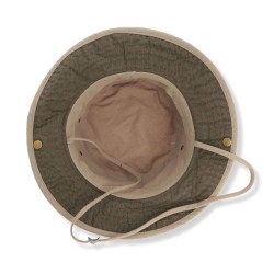 Œillets métalliques. Cordon ajustable. Panneaux souples. Bande de propreté en coton.