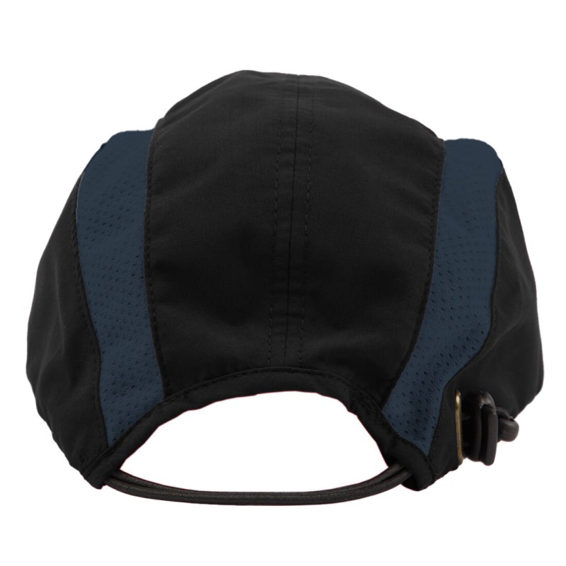 Casquette avec panneaux contrastés en maille filet. Fermeture par double élastique avec stopper. Légère et aérée.