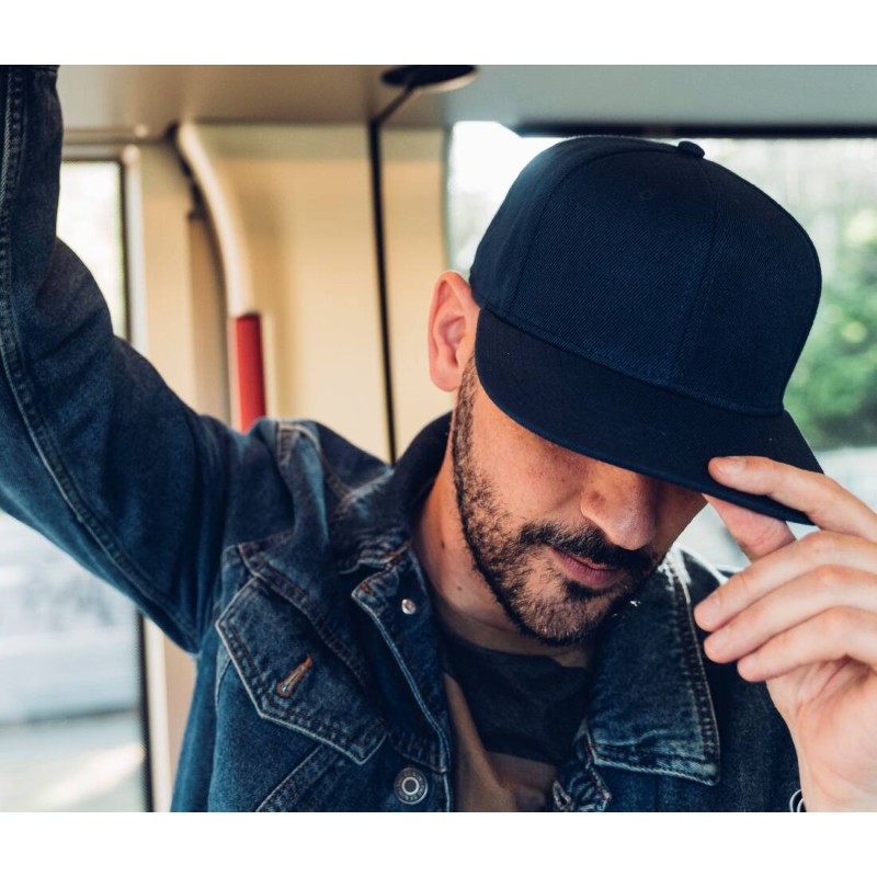 6 panneaux. Visière plate avec 6 coutures. Fermeture par patte.