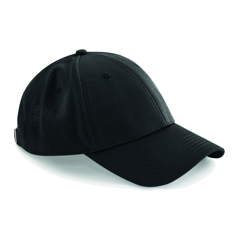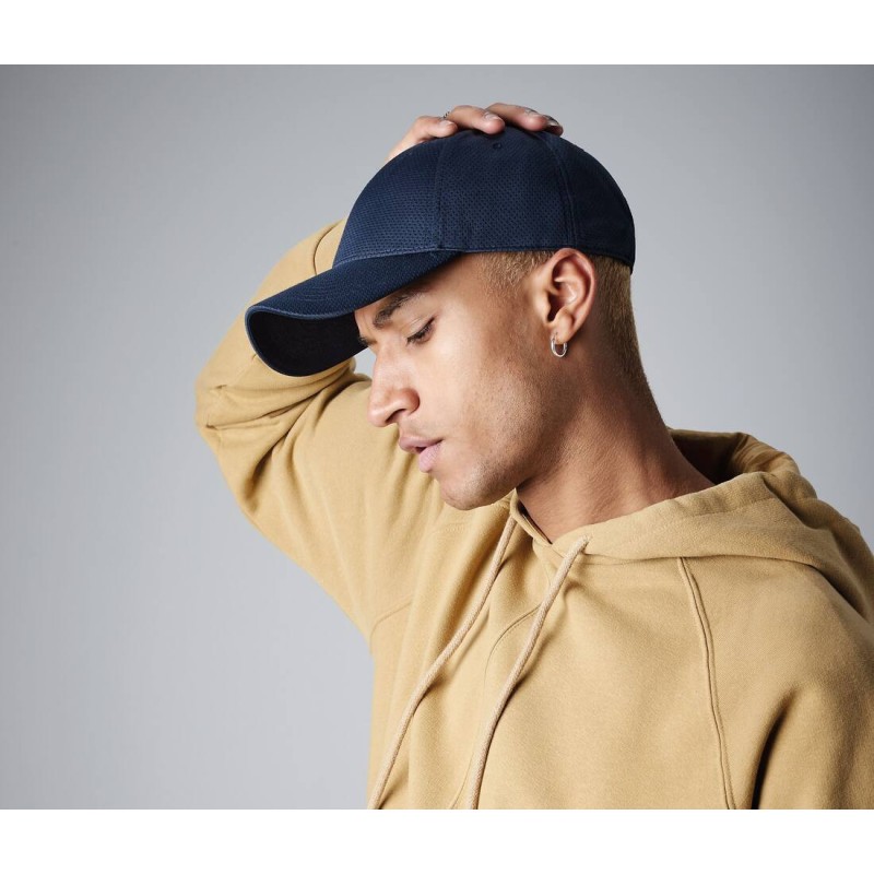 100% polyester Soft-Touch Air Mesh | Étiquette détachable pour faciliter la modification de la marque | 6 panneaux | Panneaux frontaux structurés | Trous d'aération brodés | Visière précourbée | sous-visière en coton sergé | Bandeau transpiration en coton twill | Sangle de serrage par boucle réglable