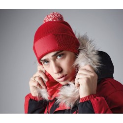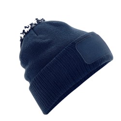Pompon bicolore | Étiquette détachable pour faciliter le changement de nom | Tricot double couche | Manchette côtelée | Patch en coton cergé pour décoration
