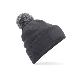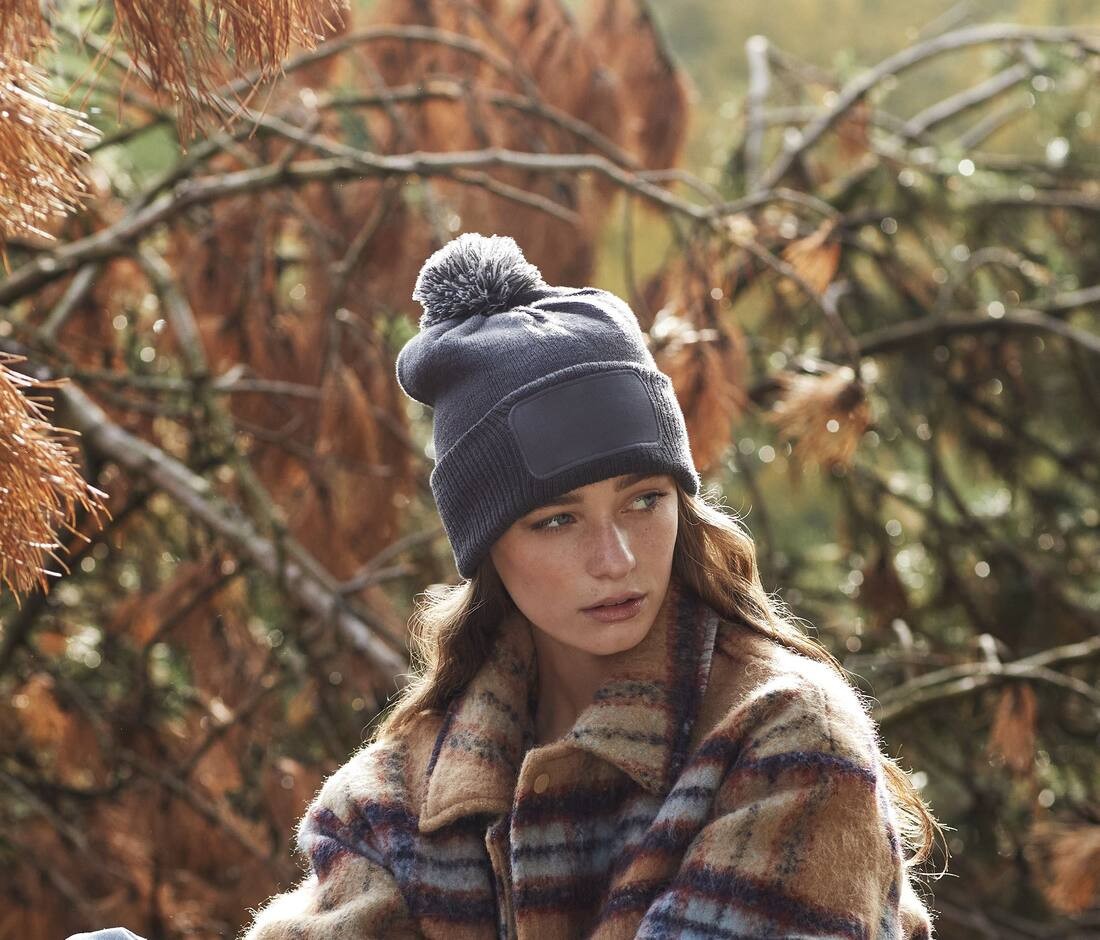 Pompon bicolore | Étiquette détachable pour faciliter le changement de nom | Tricot double couche | Manchette côtelée | Patch en coton cergé pour décoration