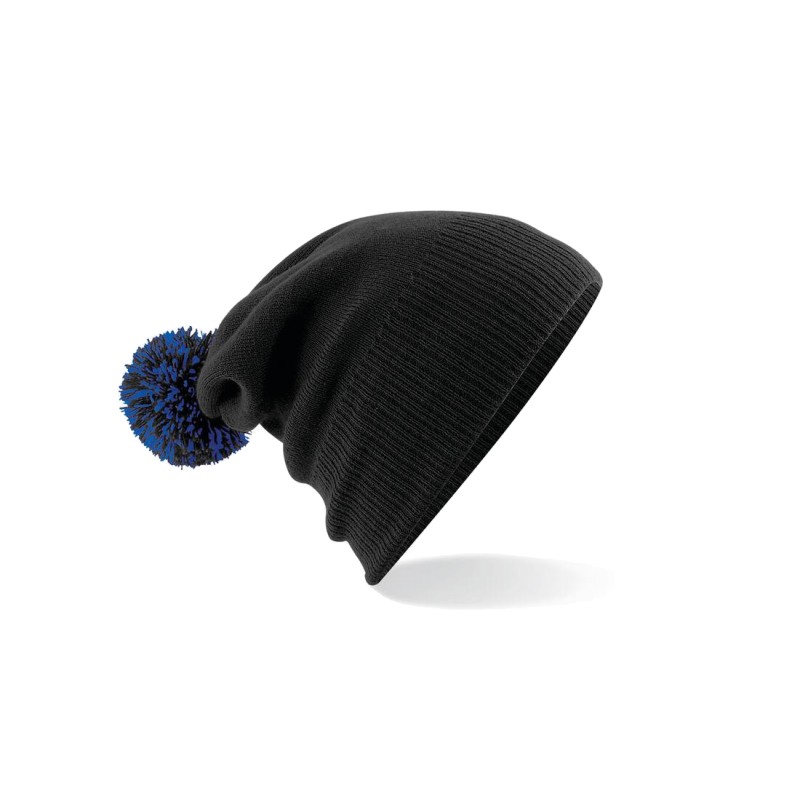 100% Soft-Touch Acrylique | Tricot double couche | Style Dual - Poignets ou larges bords | Pompon bicolore | Manchette côtelée | Étiquette détachable pour faciliter la modification de la marque
