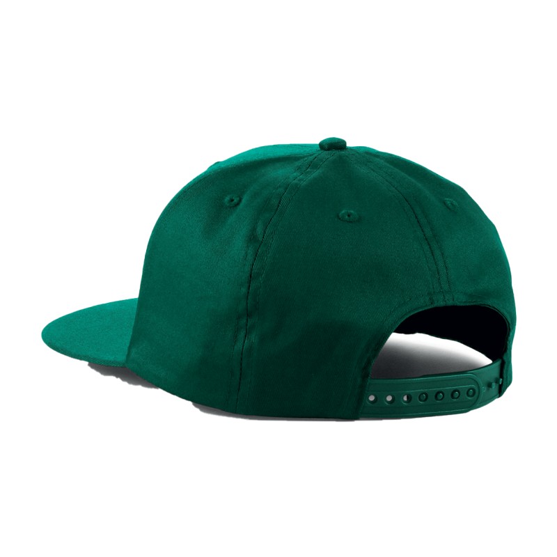 Fermeture en matière plastique à taille ajustable | Sommet plat | 100% Coton Twill - 220gsm | Autocollant authentique sur la visière | Étiquette détachable pour faciliter la modification de la marque | Trous d'aération brodés | 5 panneaux design