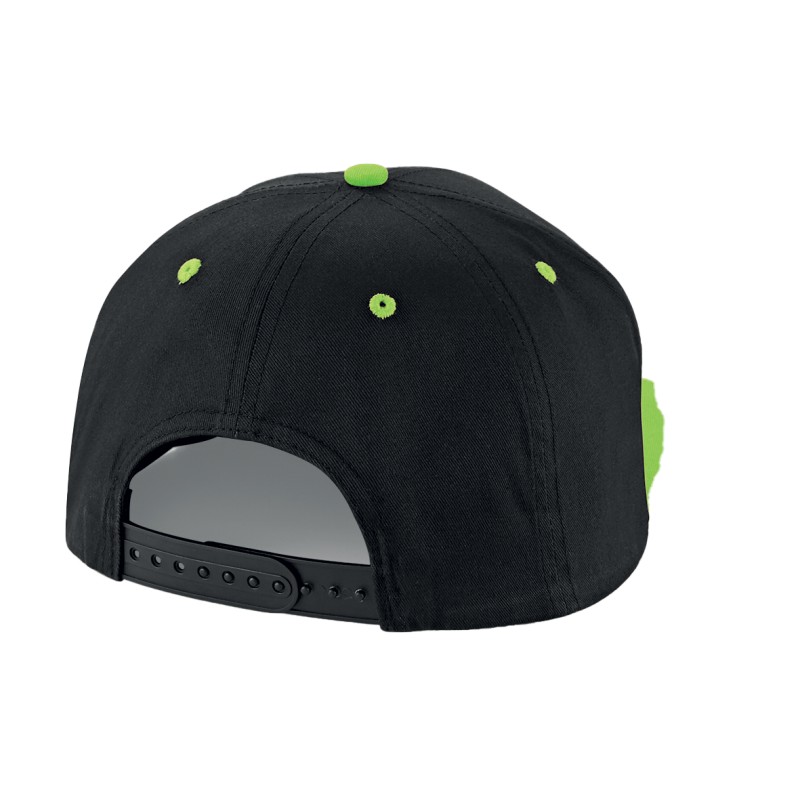 Étiquette détachable pour faciliter la modification de la marque | Visière plat | Détails contrastés | Autocollant authentique sur la visière | Fermeture en matière plastique à taille ajustable | 100% Coton Twill - 220gsm | 5 panneaux design