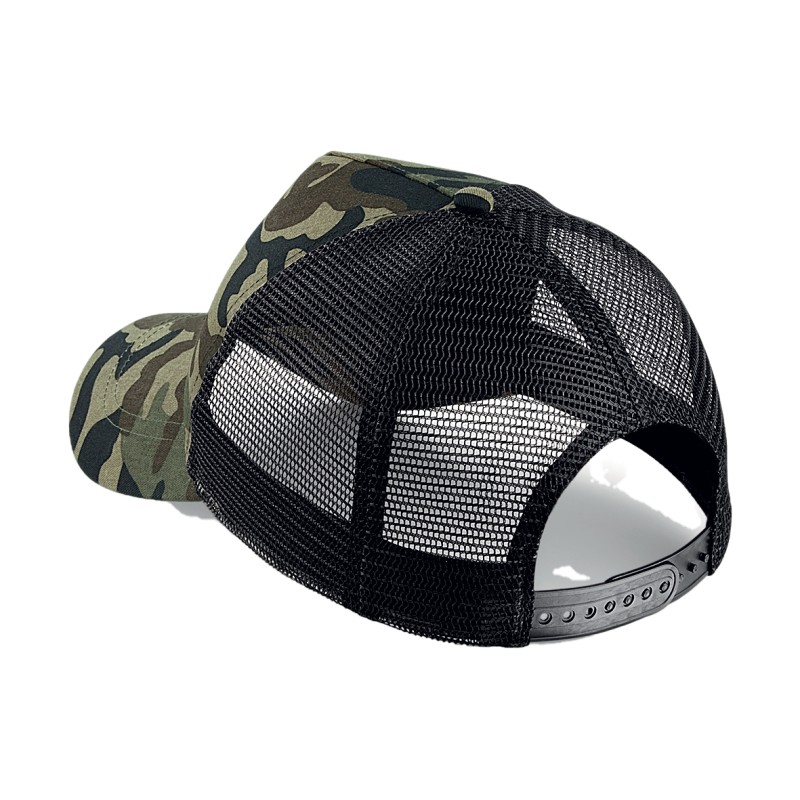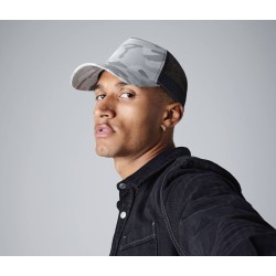 Visière précourbée | 5 panneaux design | Détails de camouflage | Fermeture en matière plastique à taille ajustable | Etiquette TearAway pour une simple personnalisation