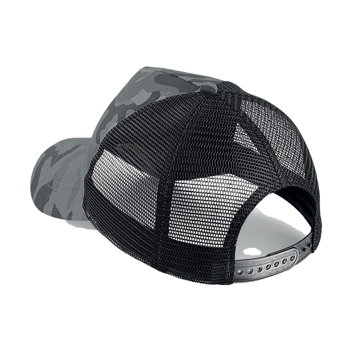 Visière précourbée | 5 panneaux design | Détails de camouflage | Fermeture en matière plastique à taille ajustable | Etiquette TearAway pour une simple personnalisation