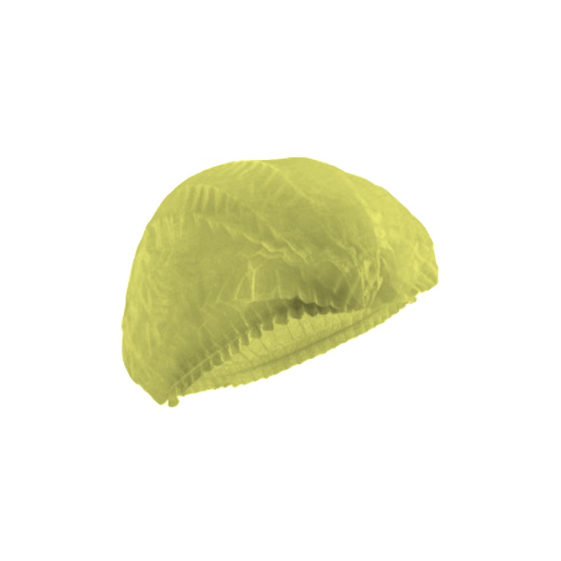 Charlotte pour la tete avec barrette, a usage unique, en « tissu non tisse », dotee d'elastique sur le bord. Carton de 1 000 pieces emballees dans 10 sachets de 100 unites.