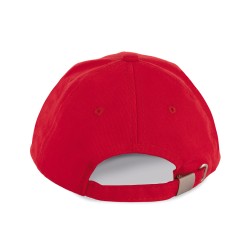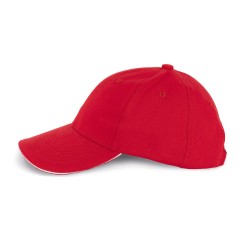 100% coton sergé brossé épais. Casquette 6 panneaux. Visière préformée. Tranche de la visière de couleur contrastée. Fermeture arrière réglable par boucle métallique argent mat + passant.
