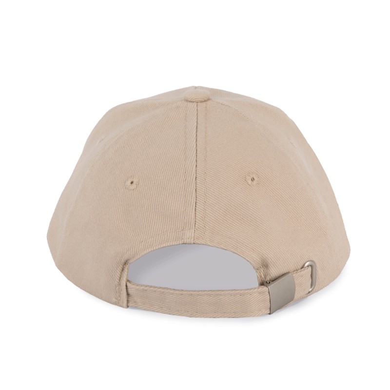 100% coton sergé brossé épais. Casquette 6 panneaux. Visière préformée. Tranche de la visière de couleur contrastée. Fermeture arrière réglable par boucle métallique argent mat + passant.