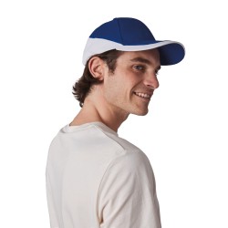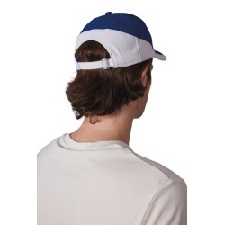 100% coton sergé brossé épais. 6 œillets d'aération. Fermeture arrière réglable par boucle métallique + passant couleur argent mat.