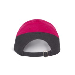 100% coton sergé brossé épais. 6 œillets d'aération. Fermeture arrière réglable par boucle métallique + passant couleur argent mat.