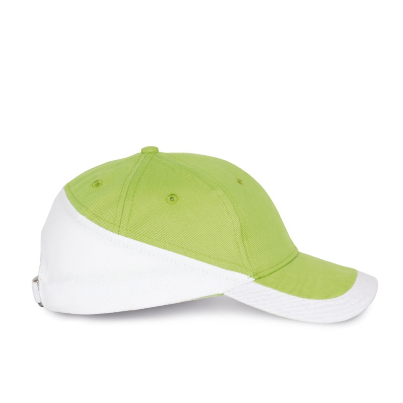 100% coton sergé brossé épais. 6 œillets d'aération. Fermeture arrière réglable par boucle métallique + passant couleur argent mat.