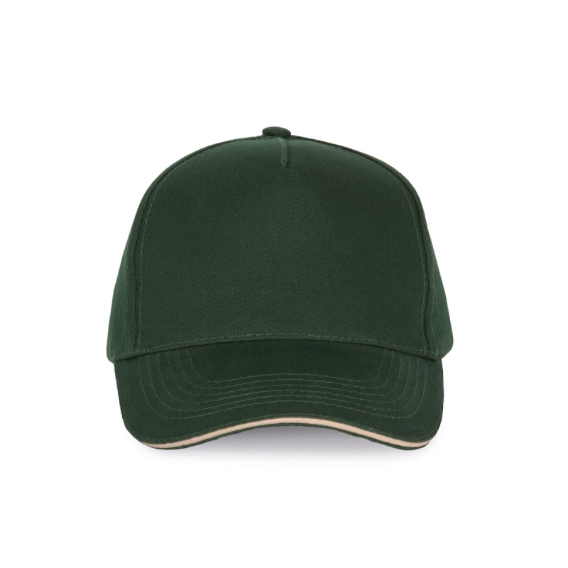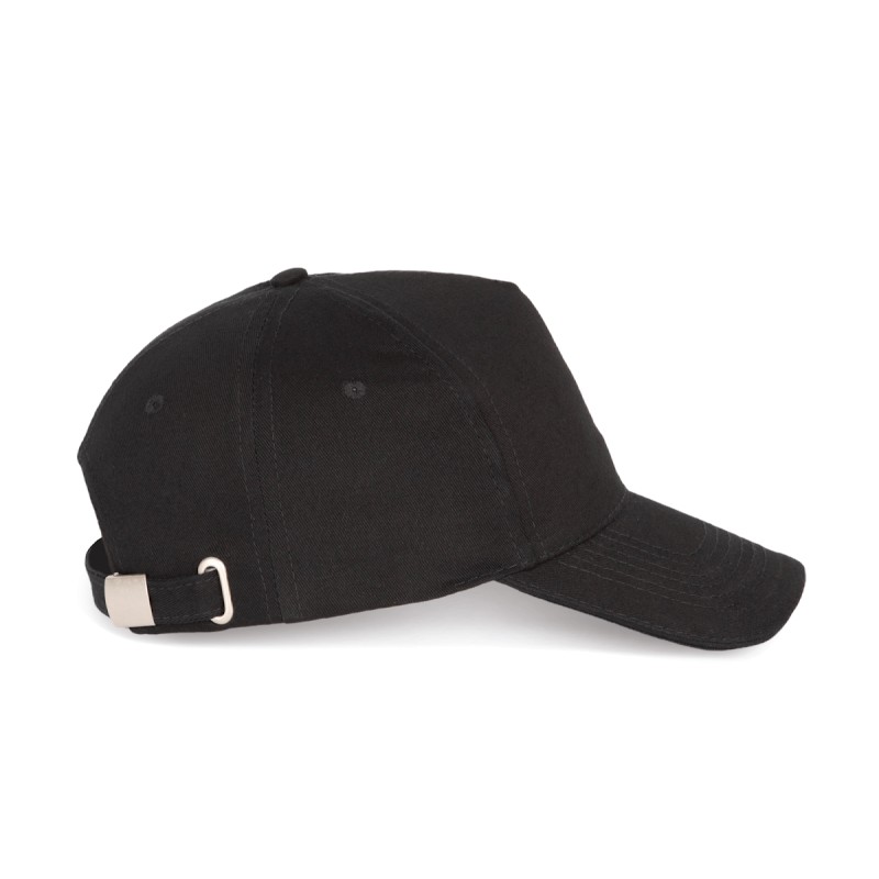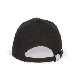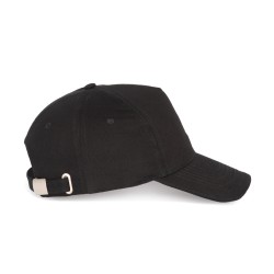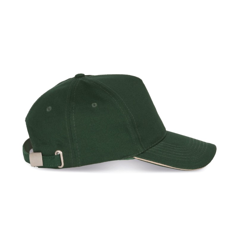 100% coton sergé brossé épais. 5 panneaux. Sandwich contrasté. Bande de transpiration doublée en coton. Fermeture arrière réglable par boucle métallique.