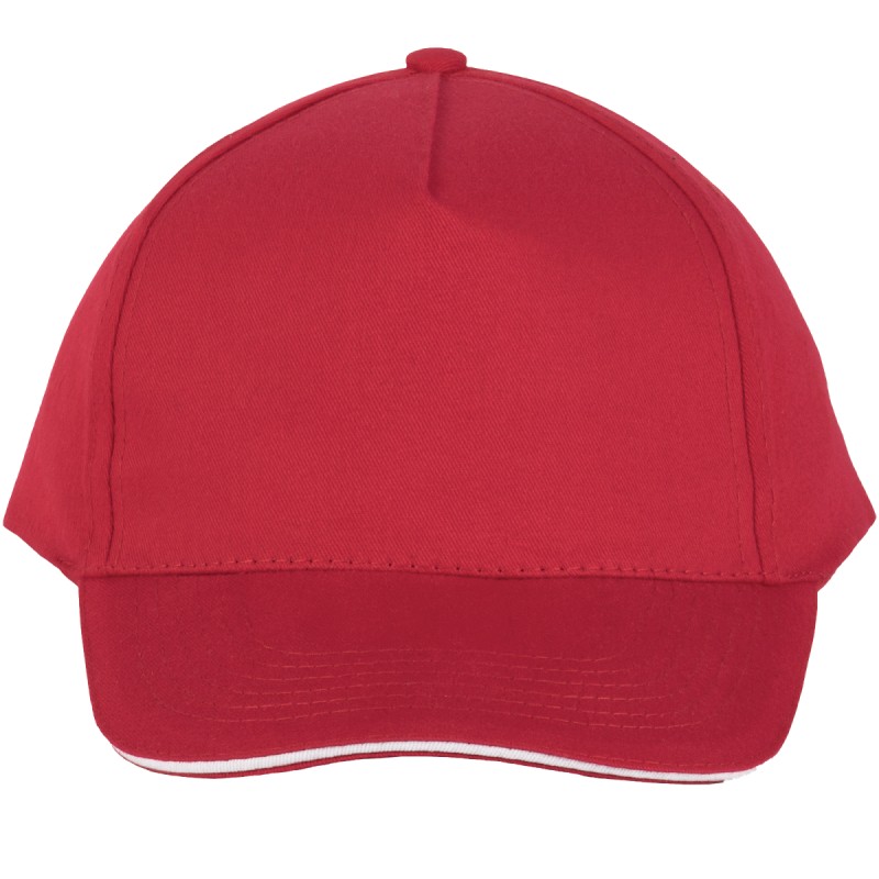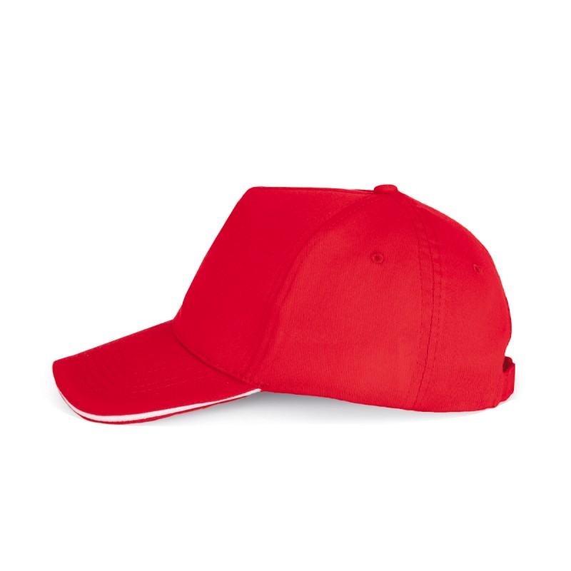 100% coton sergé brossé épais. 5 panneaux. Sandwich contrasté. Bande de transpiration doublée en coton. Fermeture arrière réglable par boucle métallique.