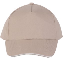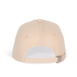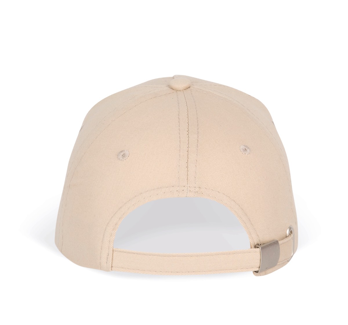 100% coton sergé brossé épais. 5 panneaux. Sandwich contrasté. Bande de transpiration doublée en coton. Fermeture arrière réglable par boucle métallique.